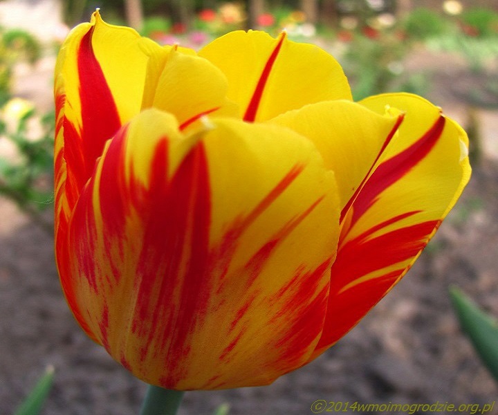 Tulipan "Washington" (J. Ligthart, 1981). Jest sportem tulipana "Golden Melody". Ciekawy w połączeniu żółtego koloru płatków i czerwonych płomieni. Przypomina w tym tulipany Rembrandta. To jeden z najbardziej znanych hodowcy Jana Ligtharta, autora tulipanów o polskich nazwach – "Irena Sendlerowa", "Mikołaj Kopernik", "Chopin" i "Maria Kaczyńska"...