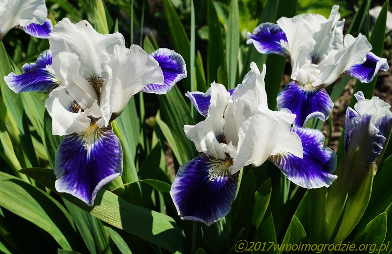 "Blue Denim" czyli jeansowy irys. A patrząc na znoszony kolor i datę narodzin (Bee Warburton, R. 1958) można by powiedzieć, że to jeansy zupełnie i Vintage. Całość w kolorze jasnego błękitu, płatki wyraziście żyłkowane, broda biało-żółta. Dorasta do 36 cm, kwitnie wcześnie, na pędzie z reguły 2-3 kwiaty o starodawnym kształcie. Królował w ogrodach w latach sześćdziesiątych ( jak i jeansy w modzie), wtedy też licznie nagradzany – Honorable Mention 1959, Cook-Douglas Award 1963, Cook-Douglas Medal 1966. Z powodzeniem mógłby też nosić nazwę Błękitny Anioł...