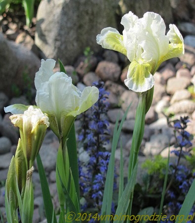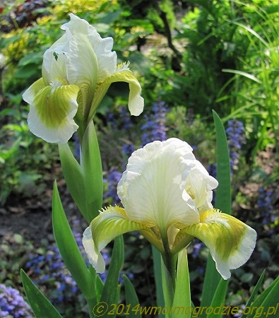 "Green Halo" (Wilma Greenlee, R. 1955). W literaturze angielskojęzycznej zadmuch płatków, czyli widoczna tu rozległa oliwkowo zielona plama, nosi nazwę Halo – stąd też i nazwa tego przeładnego irysa. Kopuła biała z widoczną oliwkową smugą i żyłkowaniem. Baza brody biała, z żółtym włosem. Kolejny stary, ale jary można by rzec i koniecznie trzeba dodać, że to jeden z moich faworytnych...