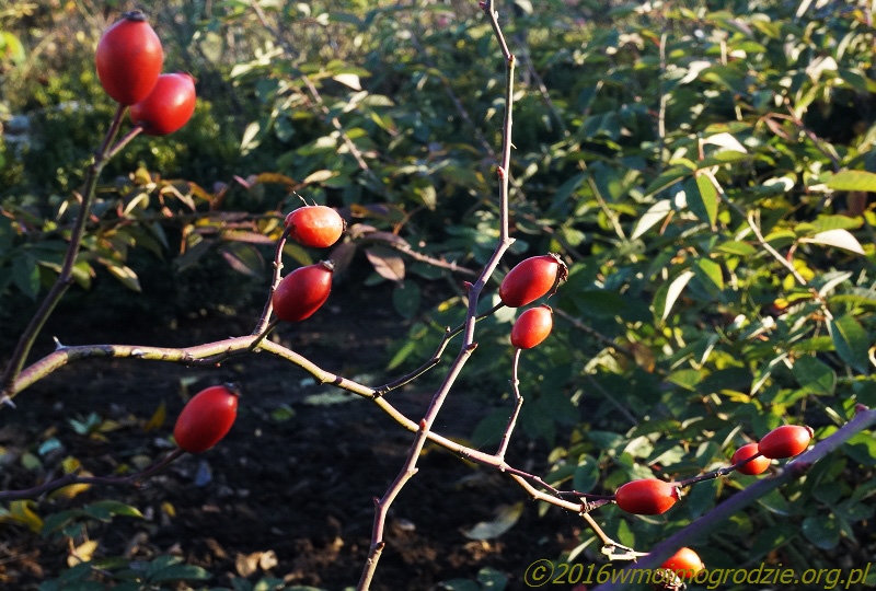 Piotr Szustakiewicz: Zapewne firma zajmującą się zielenią w Koźminie Wielkopolskim lub tamtejszy urząd miasta tak to miało rozpisane w planie rocznym, też zapewne wykonanym według ogólnych założeń pogodowych. Przed 2010 rokiem, ja z końcem listopada zawsze kopcowałem wszystkie róże i też u znajomych pod Warszawą. Natomiast ostatnie lata to prace te wykonuję z końcem grudnia, a nawet i zdarzało się w styczniu. W tych dużych miejskich nasadzeniach to nawet jak róże zaczną się zagrzybiać przez wysokie temperatury, to chemia na to wiosną pomoże. A jak nie pomoże i będą wypady, to i znajdą się nowe nasadzenia. Co innego w ogrodach prywatnych i bezopryskowych. Ja dbam o każdą różę i każda strata jest dla mnie niepowetowana. Mogę też sobie pozwolić na to czekanie na zimę i myślę, że tak może być w każdym prywatnym ogrodzie. No chyba że, róż ma się tyle co Barbra Streisand, to jest ponad 1500 i wtedy trzeba by to sobie zaplanować. Ale też ten jej ogród położony jest w Kalifornii, więc oczywiście ona takimi sprawami głowy sobie nie zaprząta :). Podobnie jak i Anglicy, Francuzi i Niemcy. No może jak im się trafi co z róż orientalnych z USDA 7a-7b (-17.8 °C i -15 °C) i wyżej, to wówczas sięgają po agrowłókninę. Kopcowanie róż jest tam dużą rzadkością. A jeszcze wracając do takiej Kalifornii i podobnych klimatów, to róże też tam zupełnie inaczej się prowadzi i inaczej też rosną. Na przykład taki wspaniały mieszaniec herbatni "Barbra Streisand" (Tom Carruth, USA, 2001) to mrozoodporność strefy 6b czyli do -20.6 °C. U nas jeśli już jest się szczęśliwym posiadaczem tej wyjątkowej róży, to koniecznie trzeba kopcować, a w mroźniejsze dni docieplać jeszcze stroiszem. Na wiosnę wiadomo, że koniecznym będzie cięcie do górnego poziomu kopca albo jeszcze niżej. Natomiast tam gdzie ciepło cięcie pędów zaleca się tylko o 1/3, dzięki temu krzewy wcześniej kwitną, bujniej i pełniej. W dużej części Niemiec na ten przykład, nie tnie się już floribund tylko pozwala rosnąć niczym różom parkowym, kiedy u nas co roku trzeba ciąć do linii przemarzania.To prawda, że jesienią róże potrafią być równie piękne jak i latem. W tym roku niestety, w październiku i listopadzie na Mazowszu słońca mało i podobnie też kwiatów. To jakby "Rose de Rescht" zakwitła to proszę o zdjęcie. Co do wczesnojesiennego cięcia, to pisałem, że pędy mogą się nie zabliźnić/zaschnąć dobrze do zimy i w konsekwencji łapać przez te rany infekcje. Ale też ja nie tnę ze względu na owoce i to już od początku września, aby się zdążyły zawiązać u odmian powtarzających. U tych które kwitną tylko raz nie tnę w ogóle po kwitnięciu. Róża stulistna "Rose de Meaux" w owocach i już bez liści, w tle francuska "Cora" jak nie z jesieni, a to przecież połowa listopada...