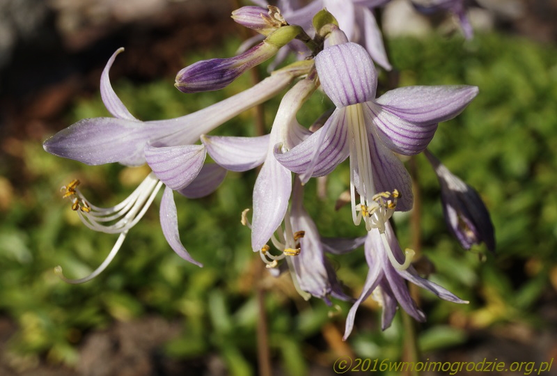 Kwiaty pojawiają się w lipcu, są pajęczego kształtu o mocno wywiniętych płatkach i w jasnolawendowym kolorze. Wcześniejsze pąki ciemniejsze, w odcieniu purpury. Całość kwiatostanów zwraca na siebie uwagę i podkreśla urodę "Faithful Heart". To kolejny przykład hosty, której rozmiar wcale nie przeszkadza aby być zauważoną...