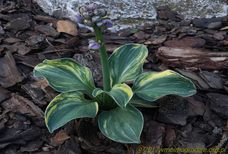 Hosta prezentowana poniżej, już w pierwszym sezonie wzbudziła uzasadnione moje zainteresowanie. Wiadomo, formy streaked nie zdarzają się zbyt często. Liście były jeszcze młode, w kształcie podłużne i już z bardzo wyraźnymi białymi i kremowymi smużeniami – zdjęcie wiosna 2016 i późniejsze październikowe z tego samego roku...