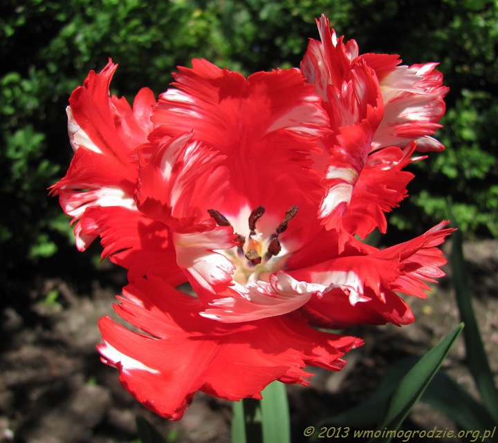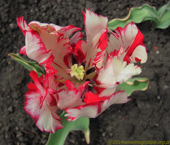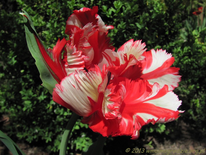 Tulipan "Estella Rijnveld" pochodzi z 1954 roku, z firmy szkółkarskiej Segers Brothers (Holandia). Jest sportem "Red Champion". To kolejny niezwykle widowiskowy reprezentant tej grupy. Białe i czerwone, mocno kryzowane płatki tańczące w powietrzu przypominają ognisty taniec flamenco. Rijnveld to nazwisko holenderskich hodowców tulipanów i zapewne ten został nazwany na cześć jednej z pań tej rodziny. Rozpoznawany i popularny na całym świecie, typowy "must-have in garden"...