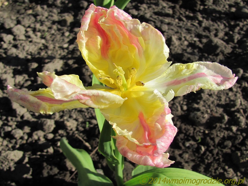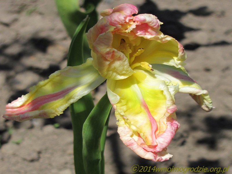 Dla odmiany kolorystycznej – tulipan "Weber's Parrot" stonowany, pastelowy i łagodny. Przeładne połączenie koloru żółtego, kości słoniowej, wykwintnego różu i delikatnej wiosennej zieleni. Jak poleca go wielu hodowców – idealny na bukiet dla panny młodej. Kwitnie w połowie maja, na pędach do 40 cm wysokości . Urzekający, urokliwy, uroczy...